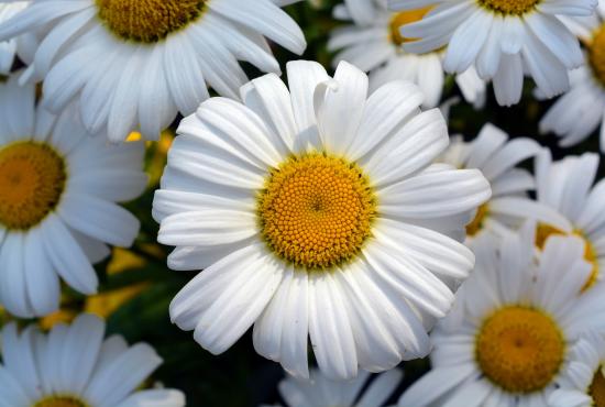 Обои Красивые белые ромашки с желтыми серединками крупным планом