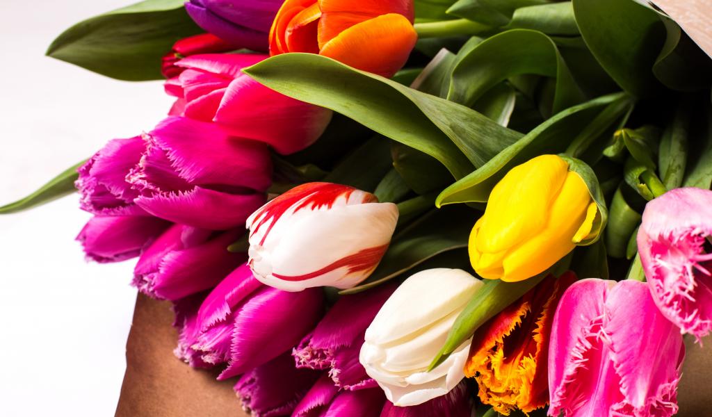 Обои Красивый букет разноцветных тюльпанов крупных планом