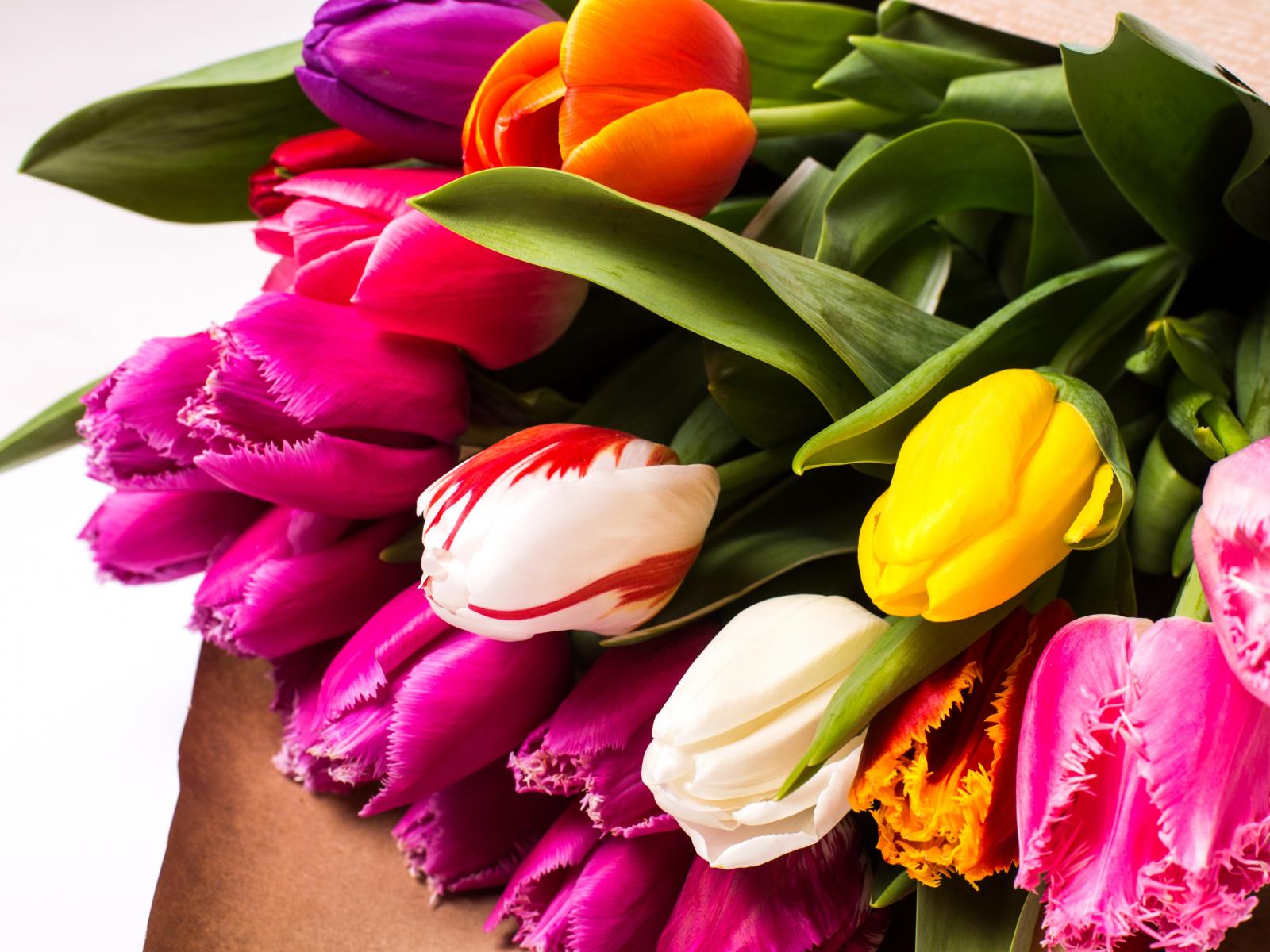 Обои Красивый букет разноцветных тюльпанов крупных планом