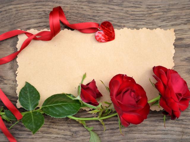 Обои Красные розы и сердечко, фон для поздравительной открытки