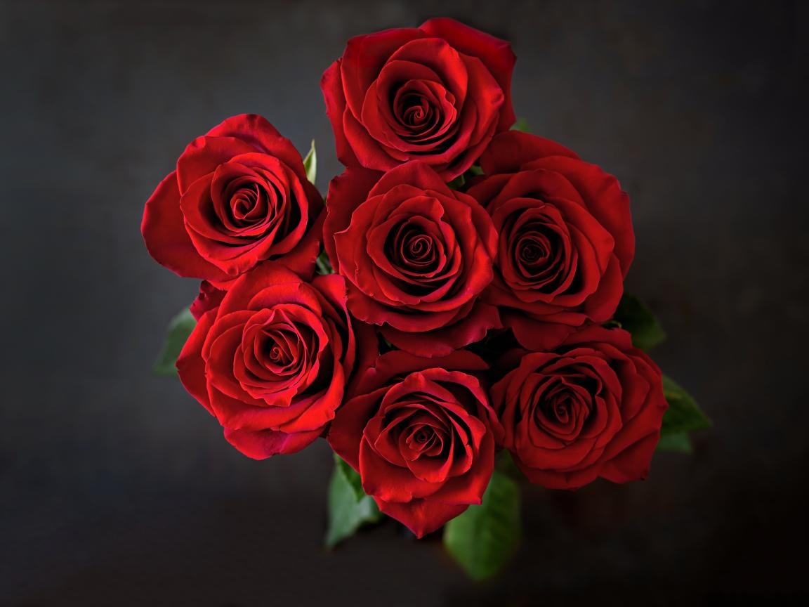 Обои Букет красных роз на сером фоне вид сверху