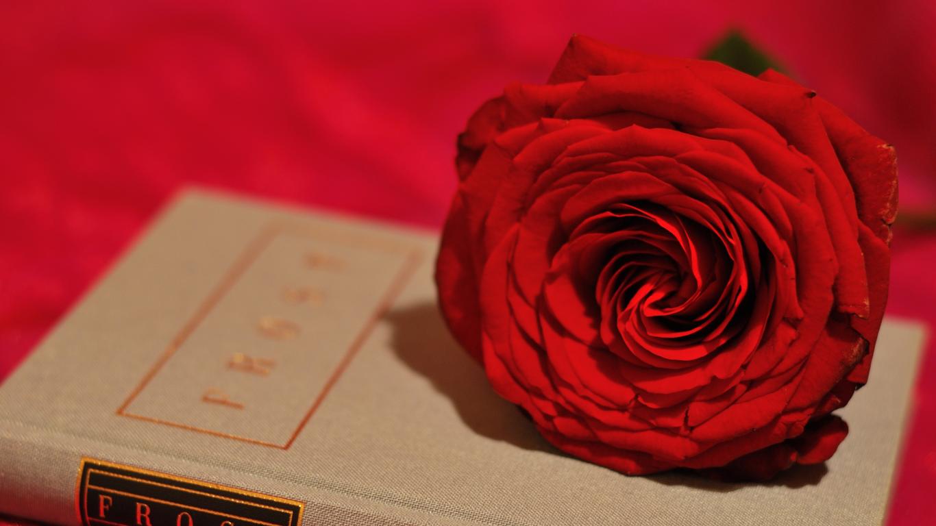 Обои Большая красивая красная роза лежит на книге