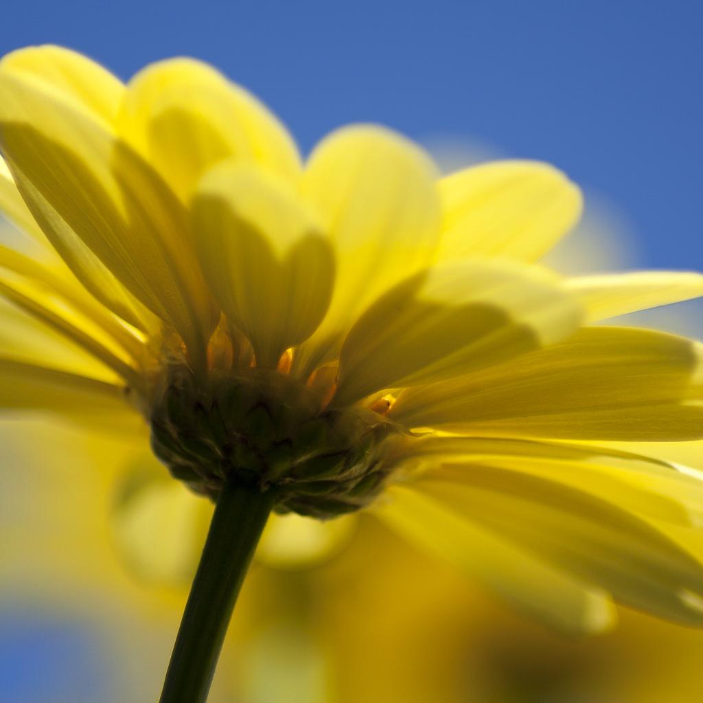 Обои Желтый цветок герберы на голубом фоне