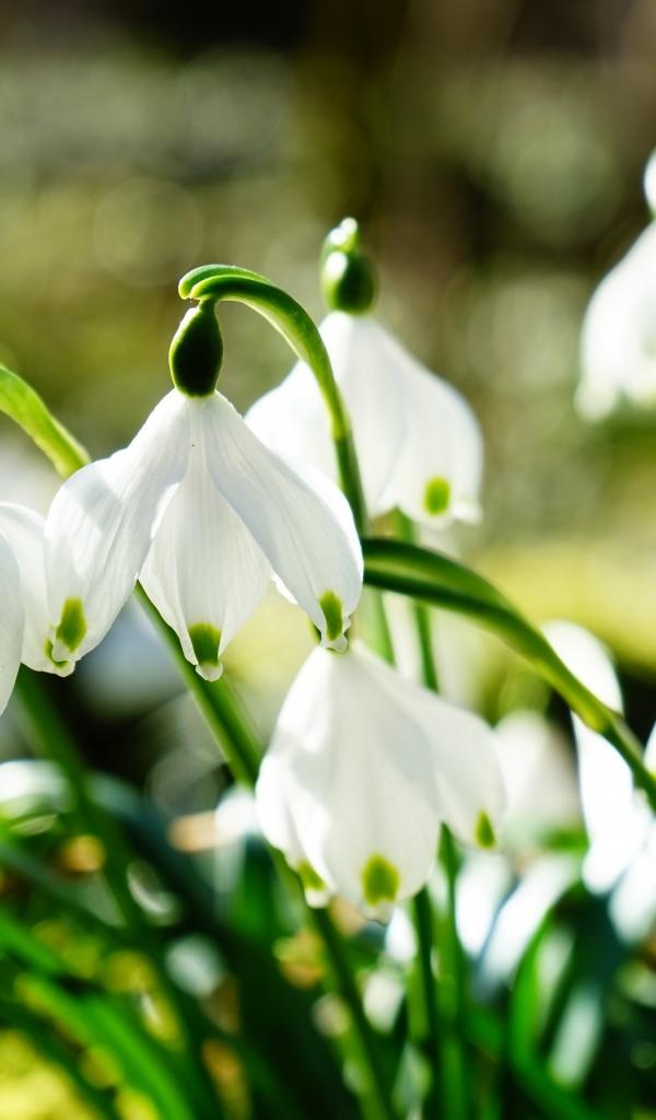 Обои Нежные белые весенние первоцветы подснежники