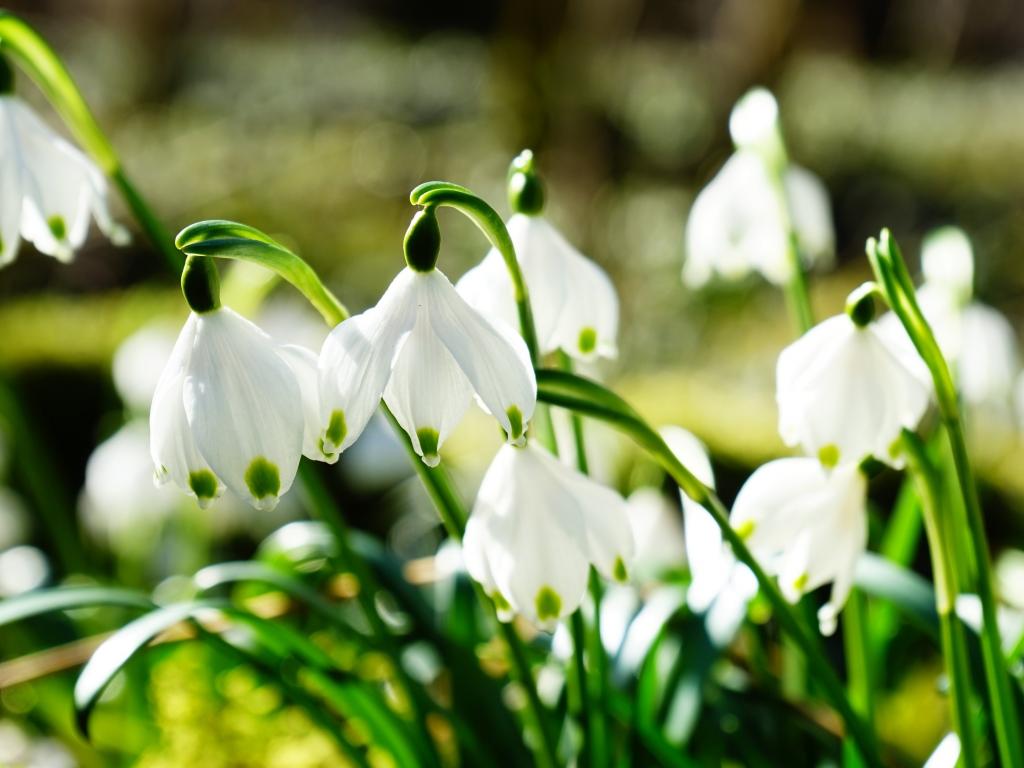 Обои Нежные белые весенние первоцветы подснежники