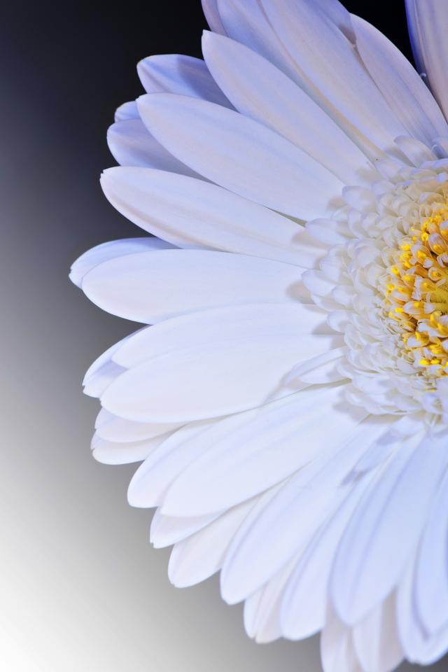 Обои Нежный белый цветок герберы с желтой серединкой крупным планом