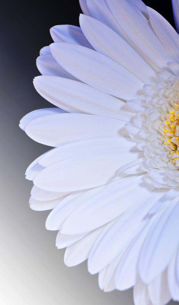Обои Нежный белый цветок герберы с желтой серединкой крупным планом