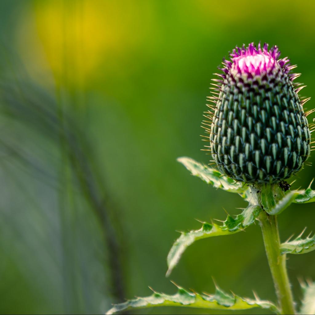 Обои Нераспустившийся цветок чертополоха на зеленом фоне