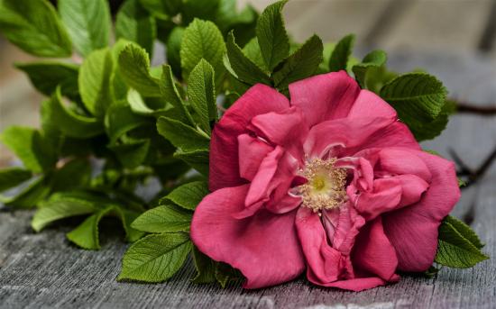 Обои Розовый цветок розы с зелеными листьями