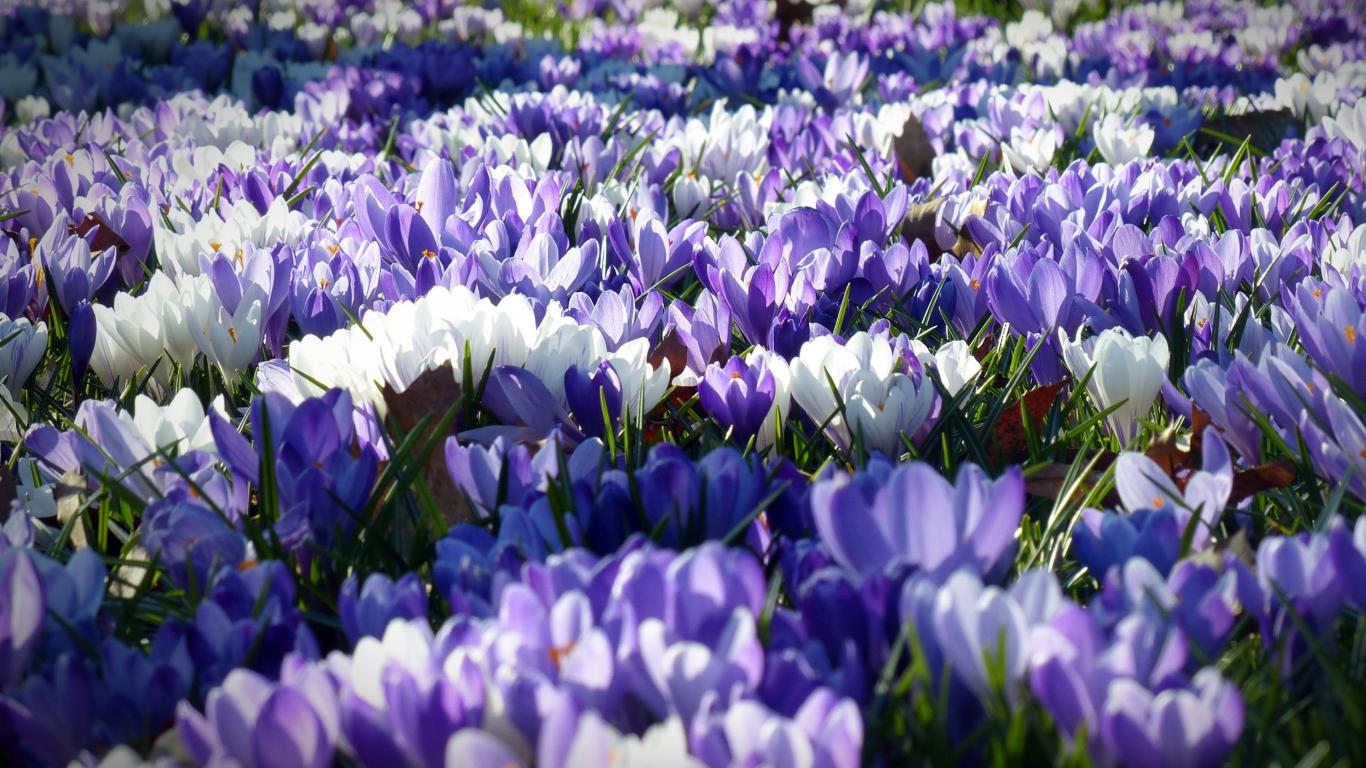 Обои Поляна красивых разноцветных весенних крокусов