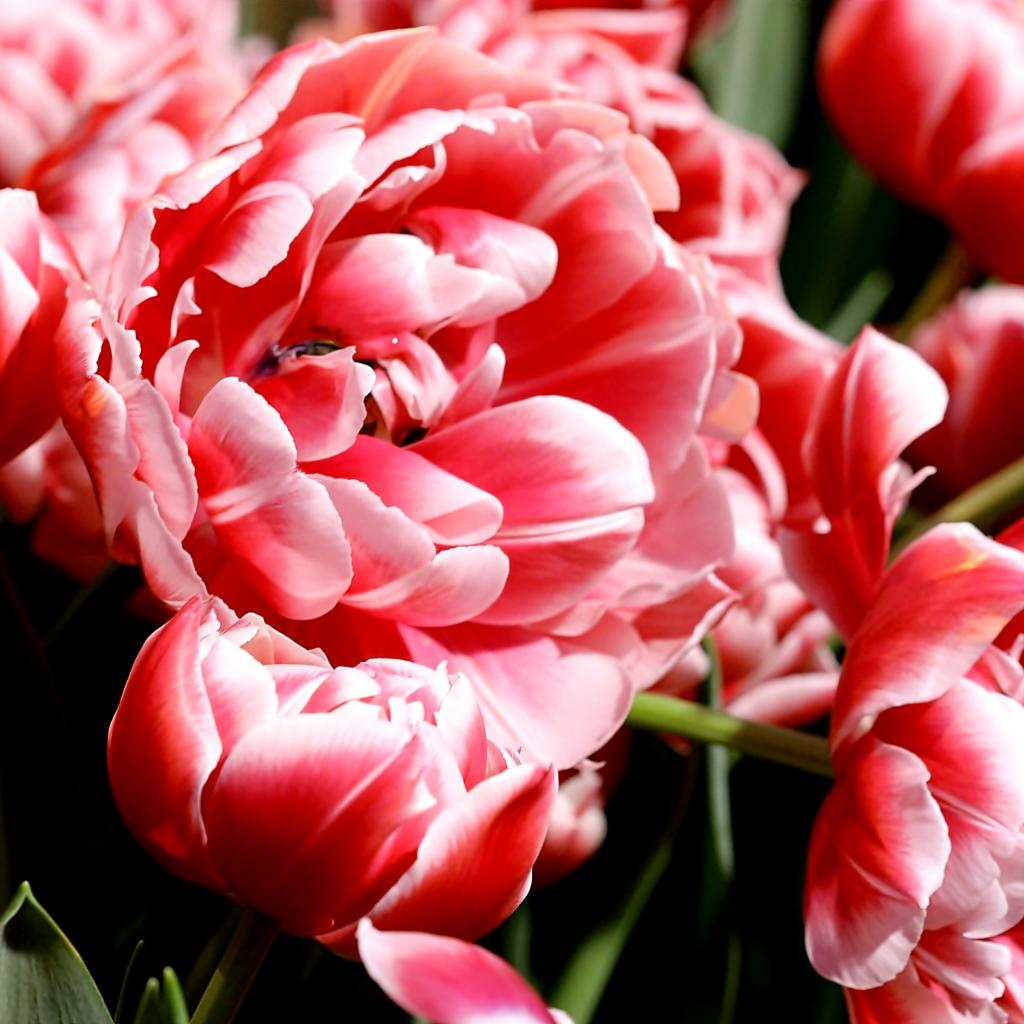 Обои Много розово-белых тюльпанов крупным планом