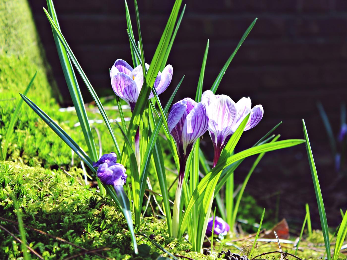 Обои Первые весенние цветы крокусы в лучах солнца