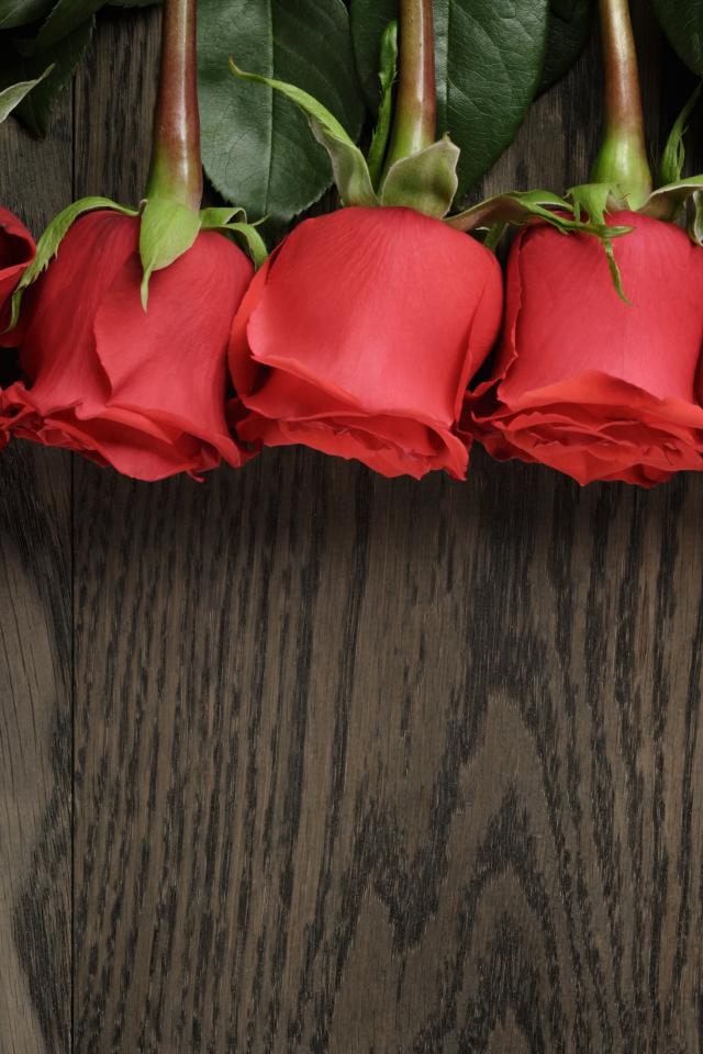 Обои Пять красных роз на деревянной поверхности, шаблон для открытки