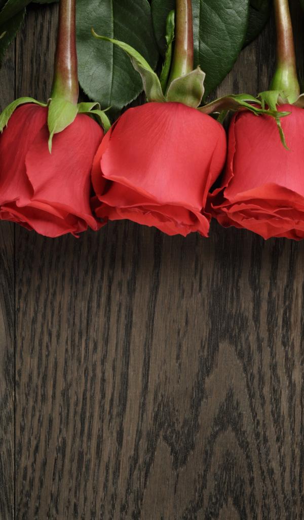 Обои Пять красных роз на деревянной поверхности, шаблон для открытки
