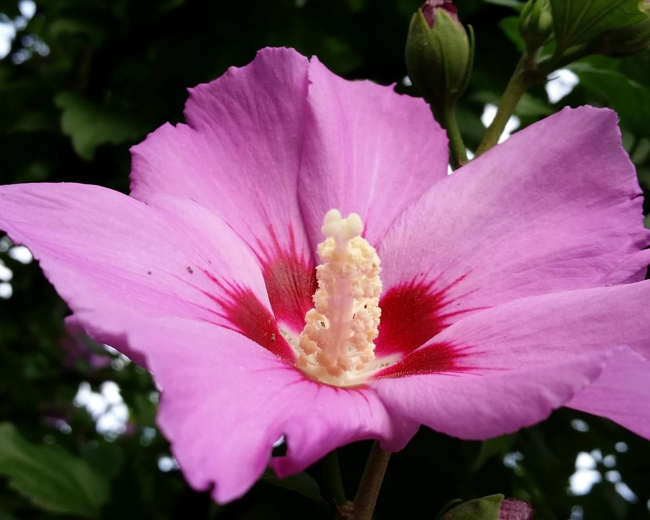 Обои Большой розовый цветок гибискуса с бутоном