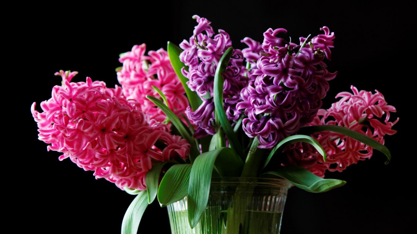 Обои Букет гиацинтов в вазе на черном фоне