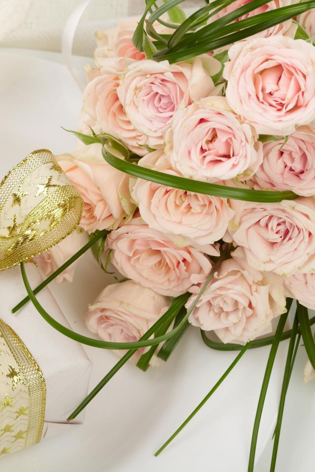 Обои Букет розовых роз и подарок с красивым бантом
