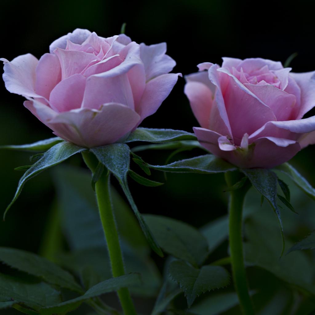 Обои Две красивых розовых розы на клумбе