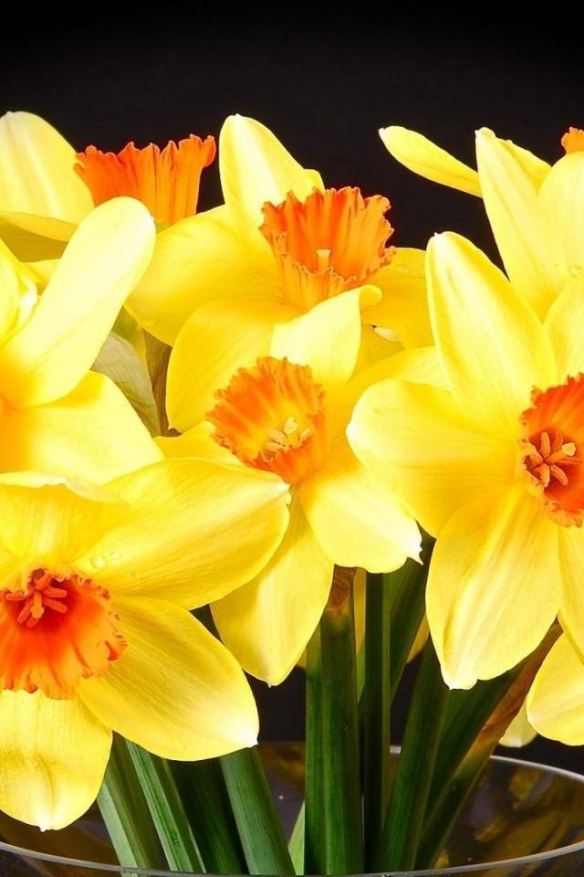 Обои Желтые нарциссы в вазе на черном фоне