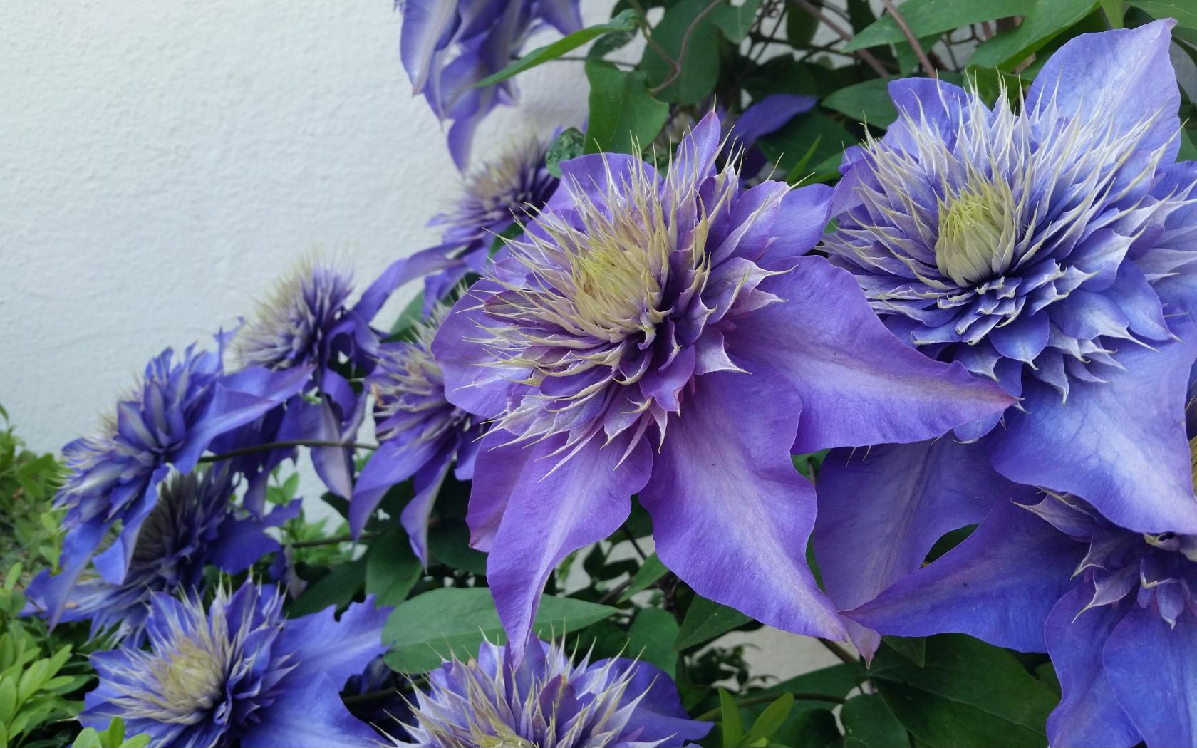Обои Красивые фиолетовые цветы клематиса