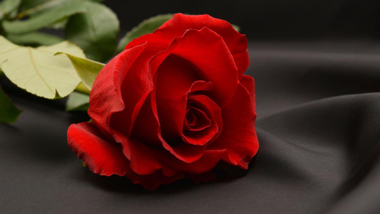 Обои Красная роза на черном фоне
