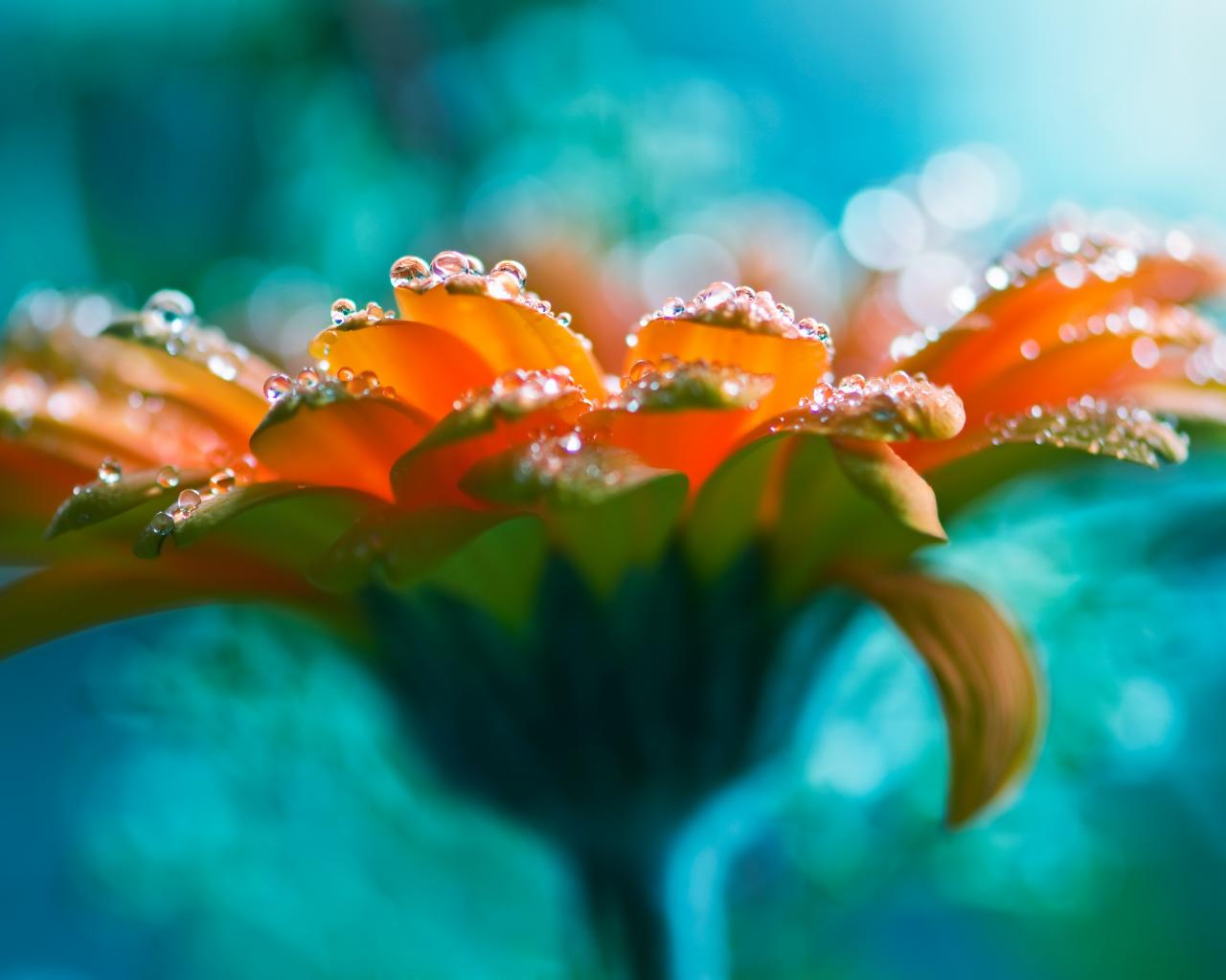 Обои Красивый оранжевый цветок герберы с росой на лепестках