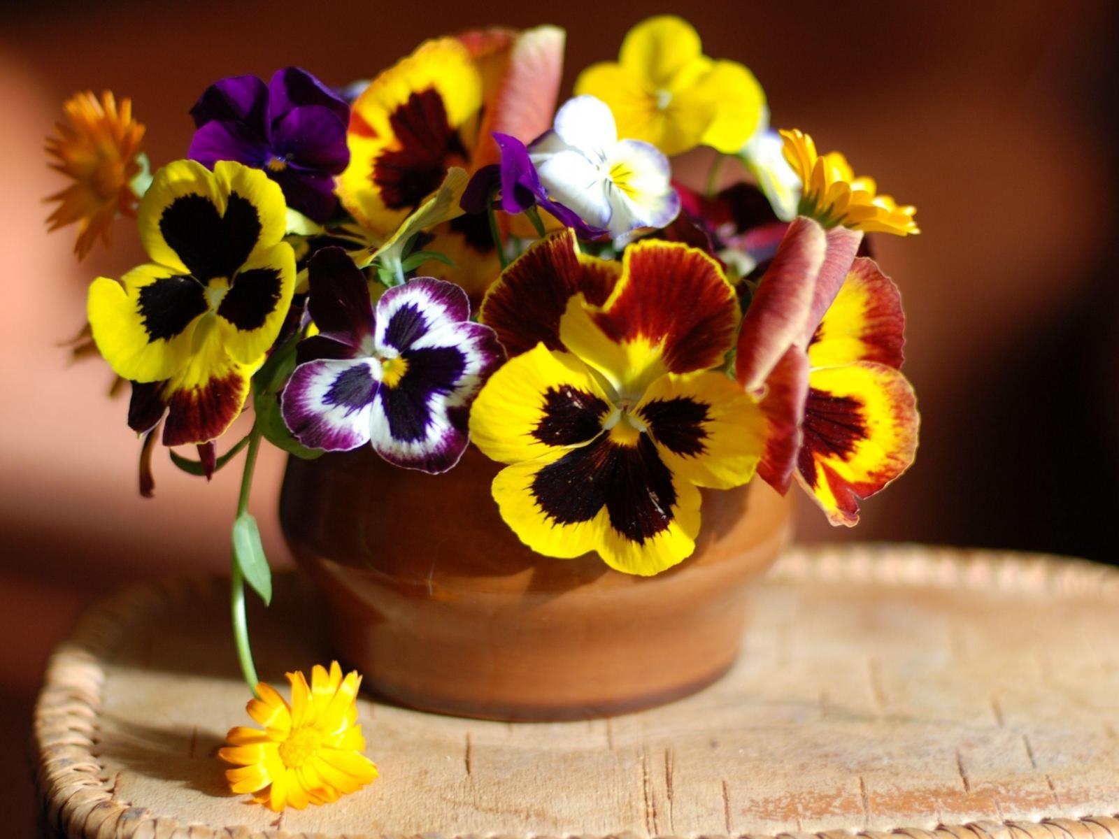 Обои Букет цветов анютины глазки в вазе