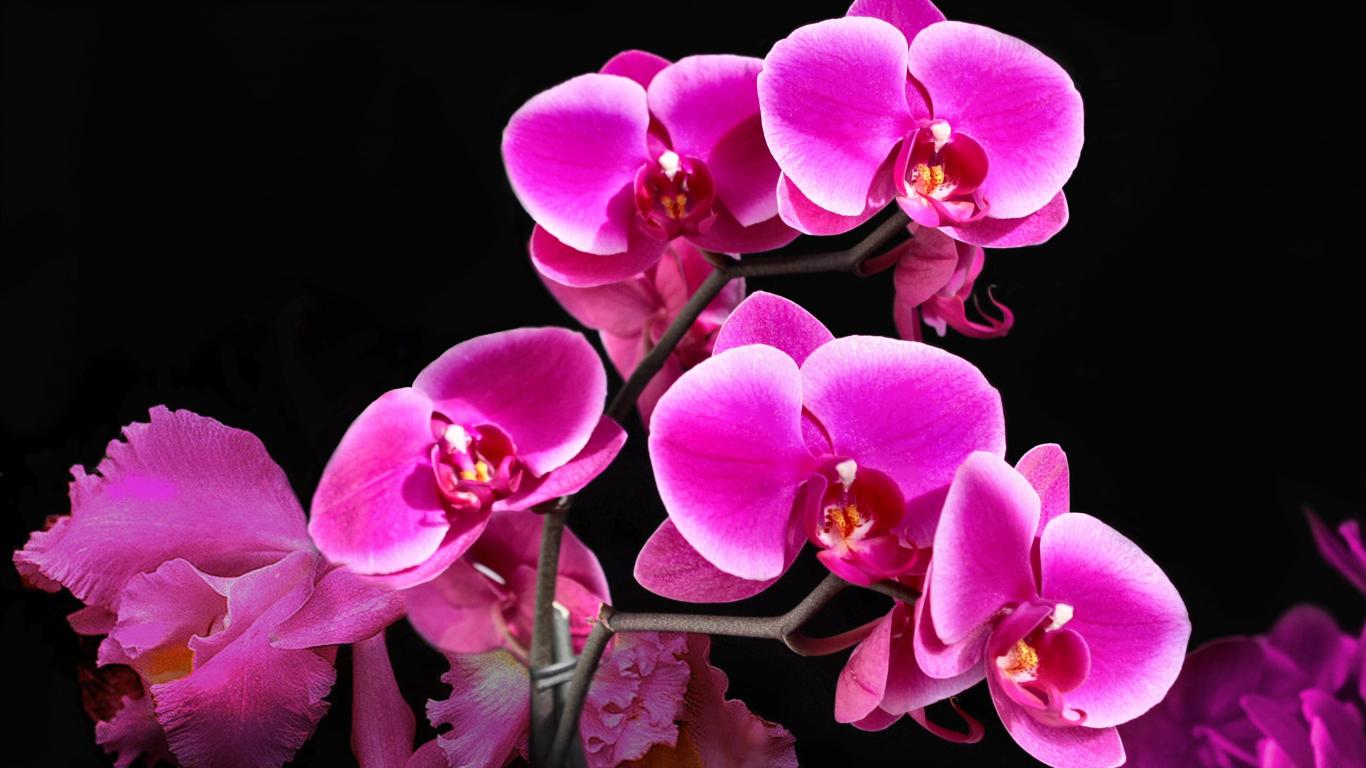 Обои Красивые розовые цветы орхидеи на черном фоне
