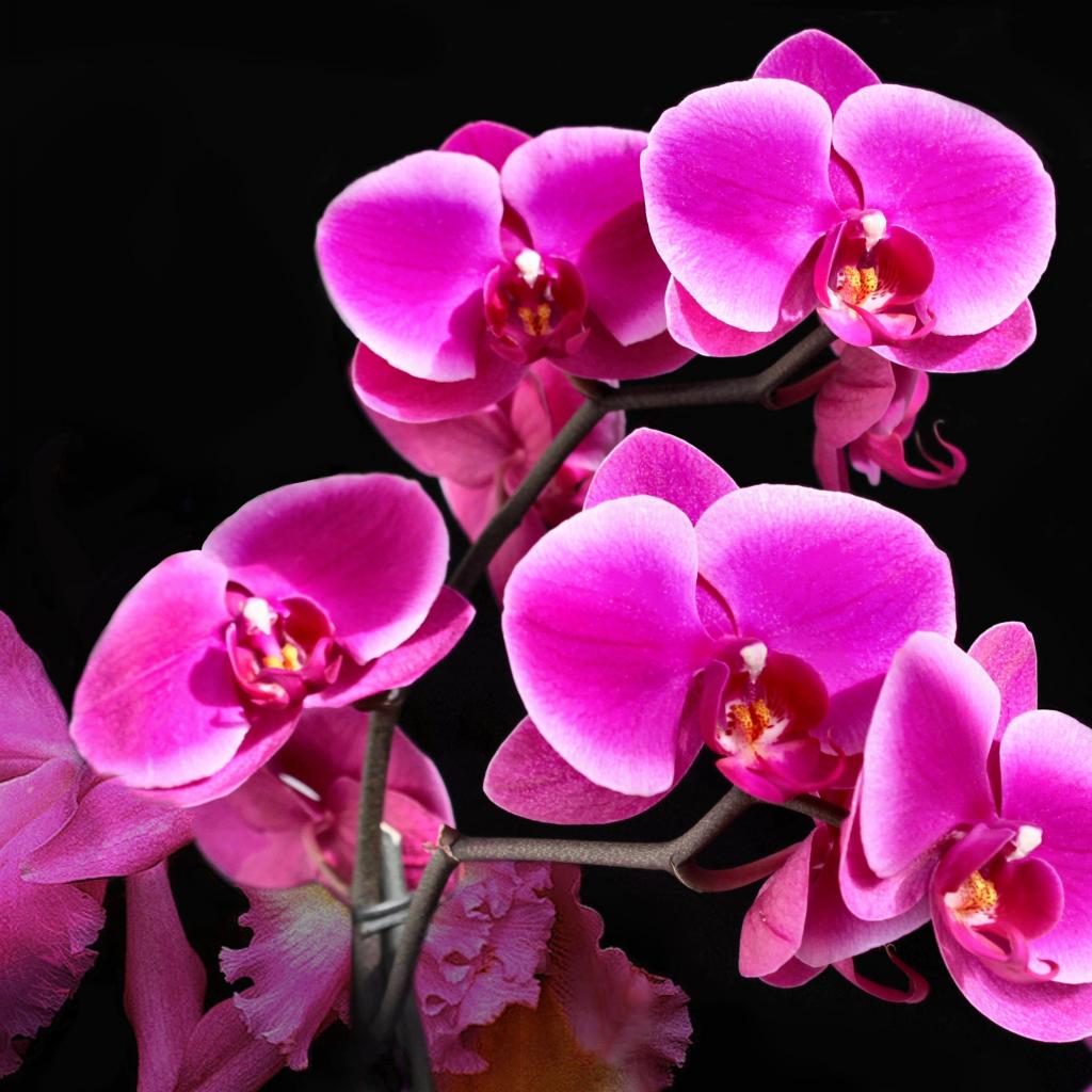 Обои Красивые розовые цветы орхидеи на черном фоне