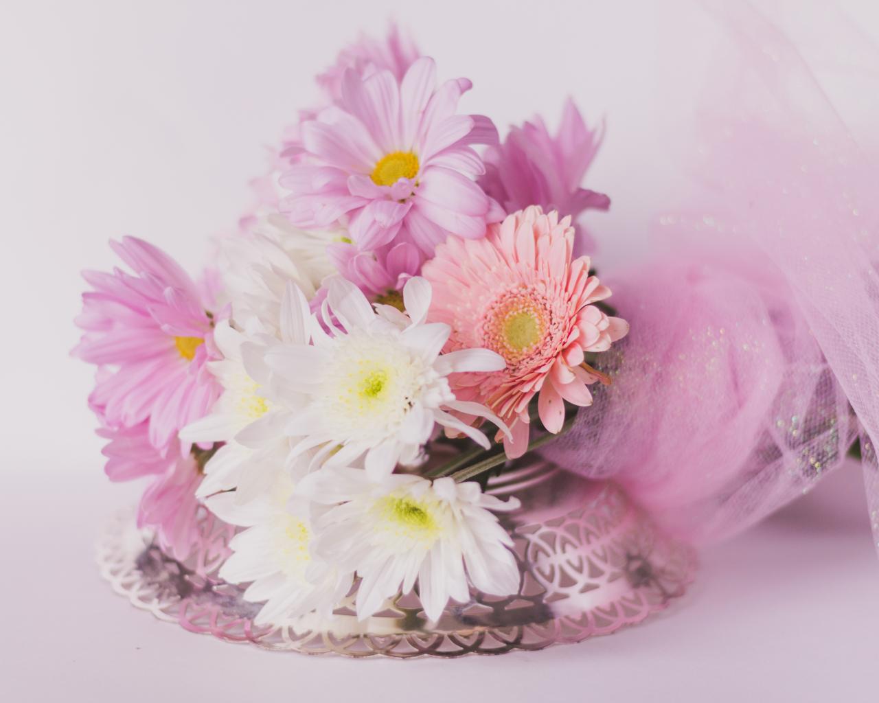 Обои Красивый букет с цветами герберы и хризантемы