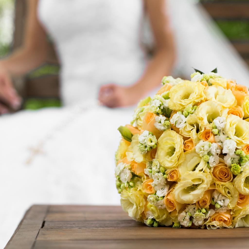 Обои Красивый свадебный букет с розами и цветами эустома