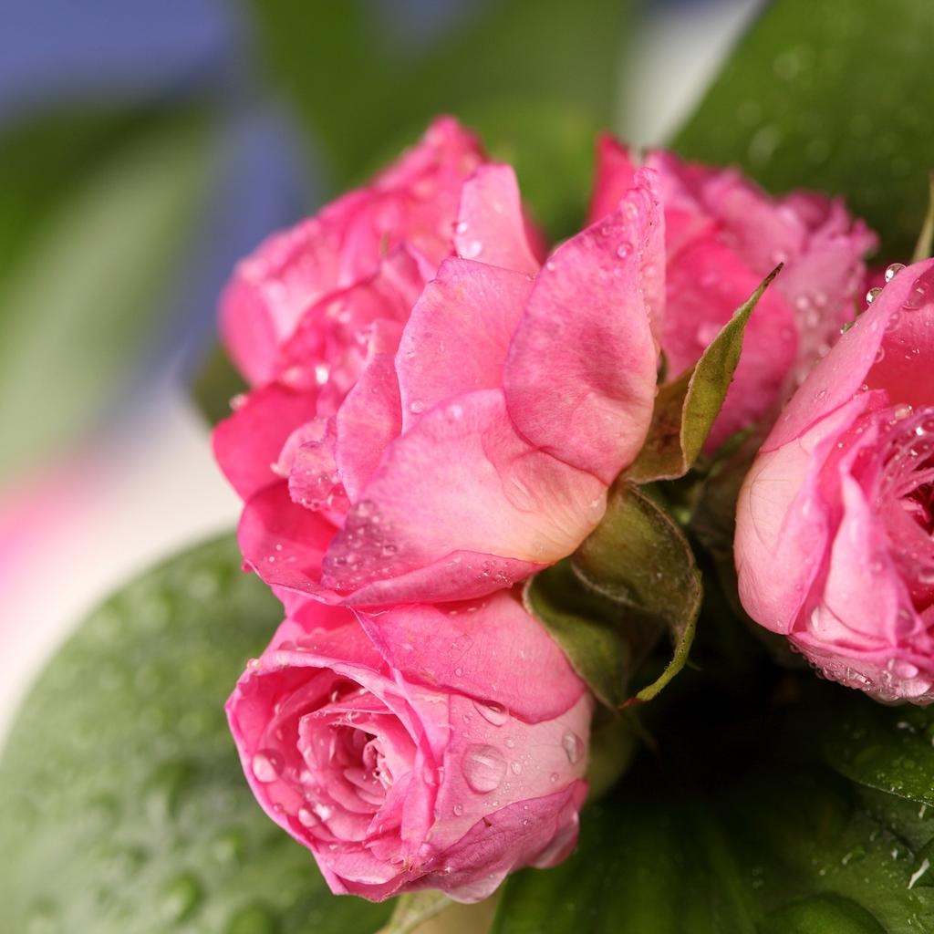 Обои Букет розовых роз в каплях росы