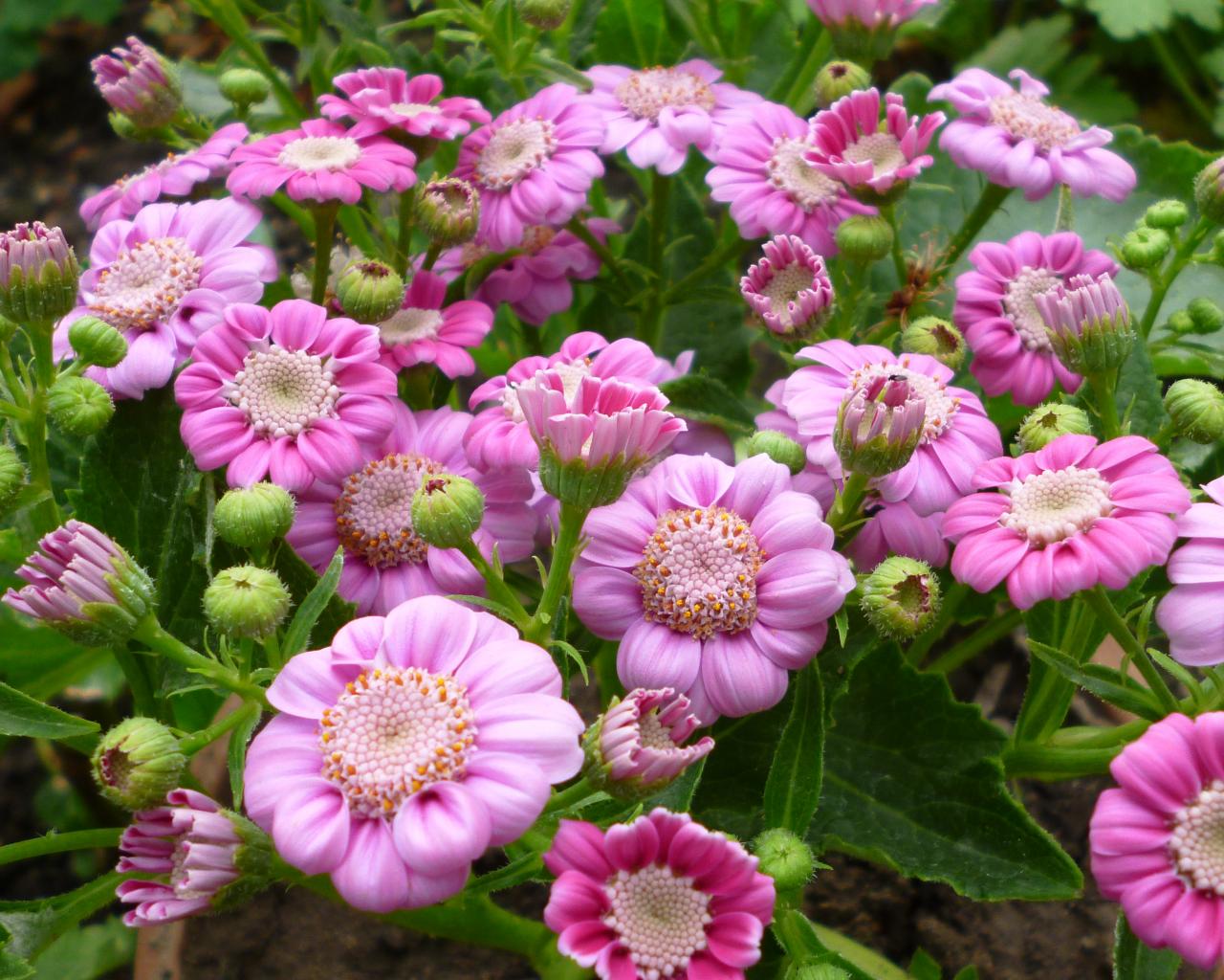 Обои Розовые садовые цветы цинерария