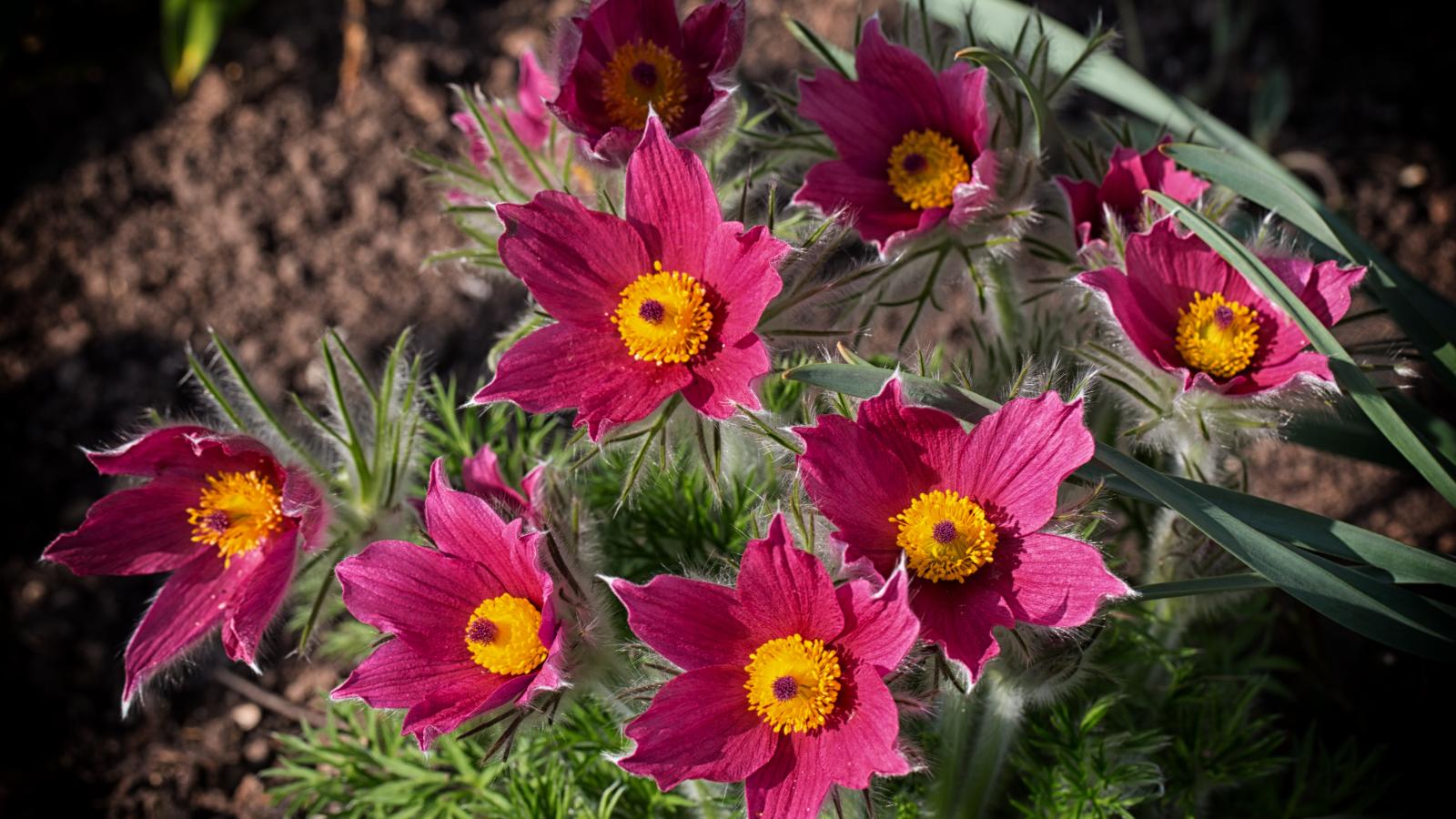 Обои Розовые цветы прострел, вид сверху