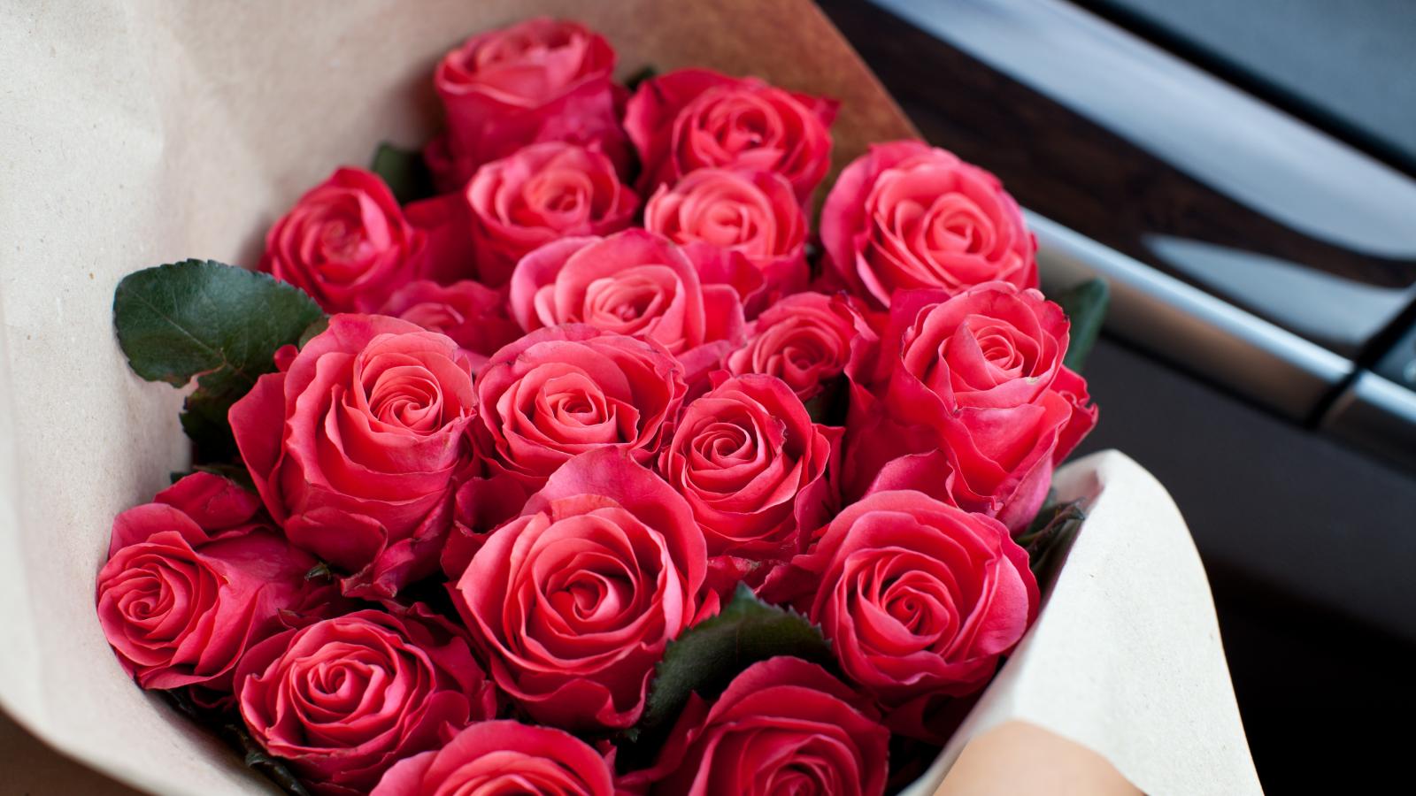 Обои Букет розовых роз в машине