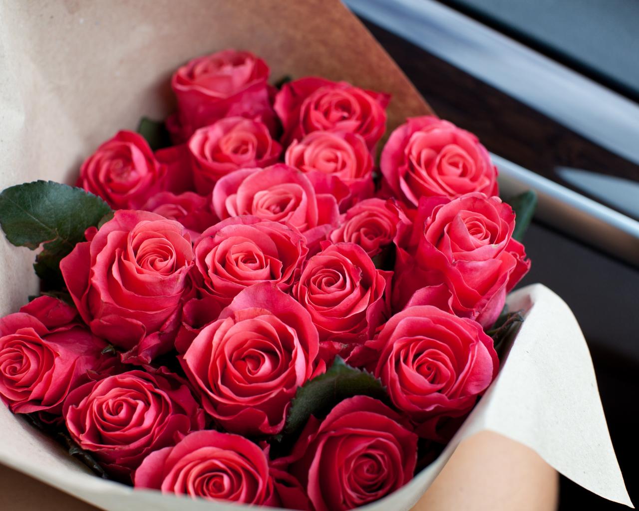» Обои Букет розовых роз в машине