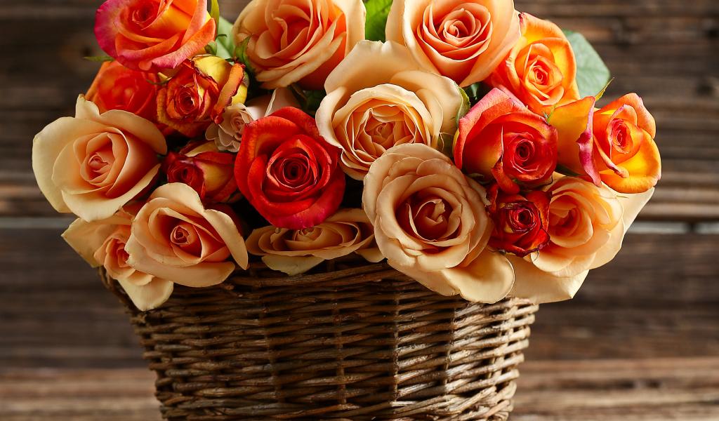 Обои Букет красивых оранжевых роз в корзине