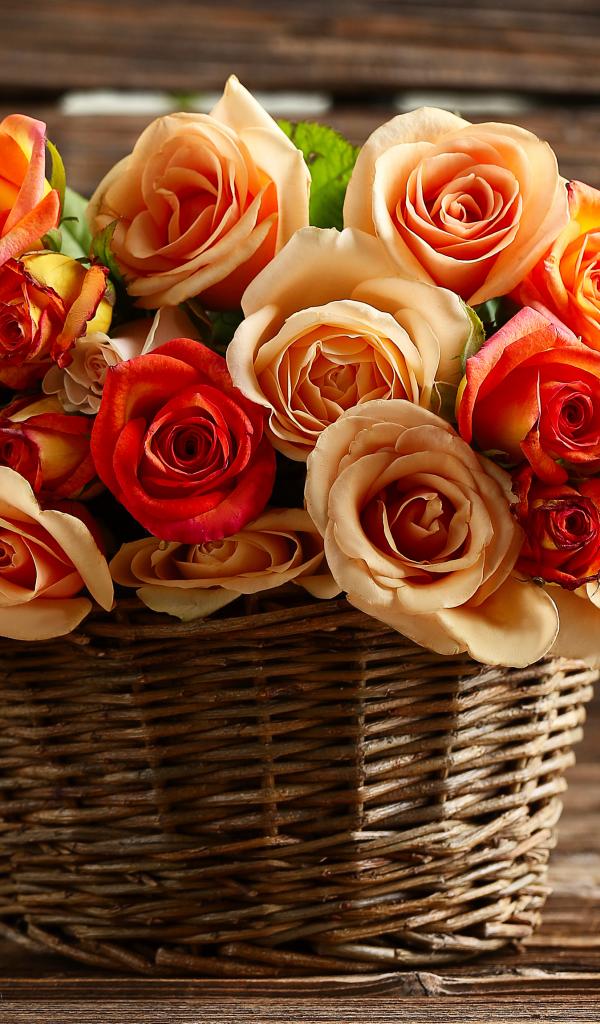 Обои Букет красивых оранжевых роз в корзине