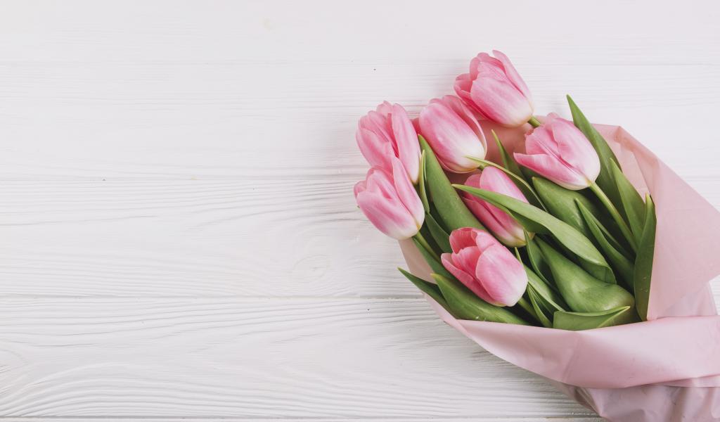 Обои Букет розовых тюльпанов, шаблон для поздравительной открытки