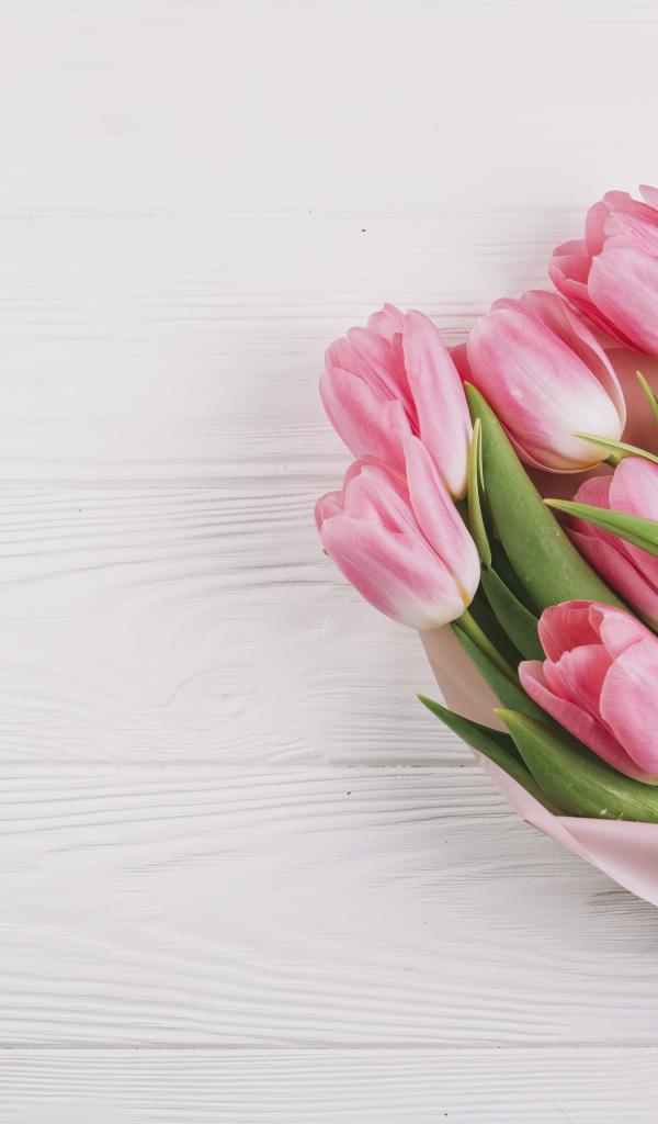 Обои Букет розовых тюльпанов, шаблон для поздравительной открытки