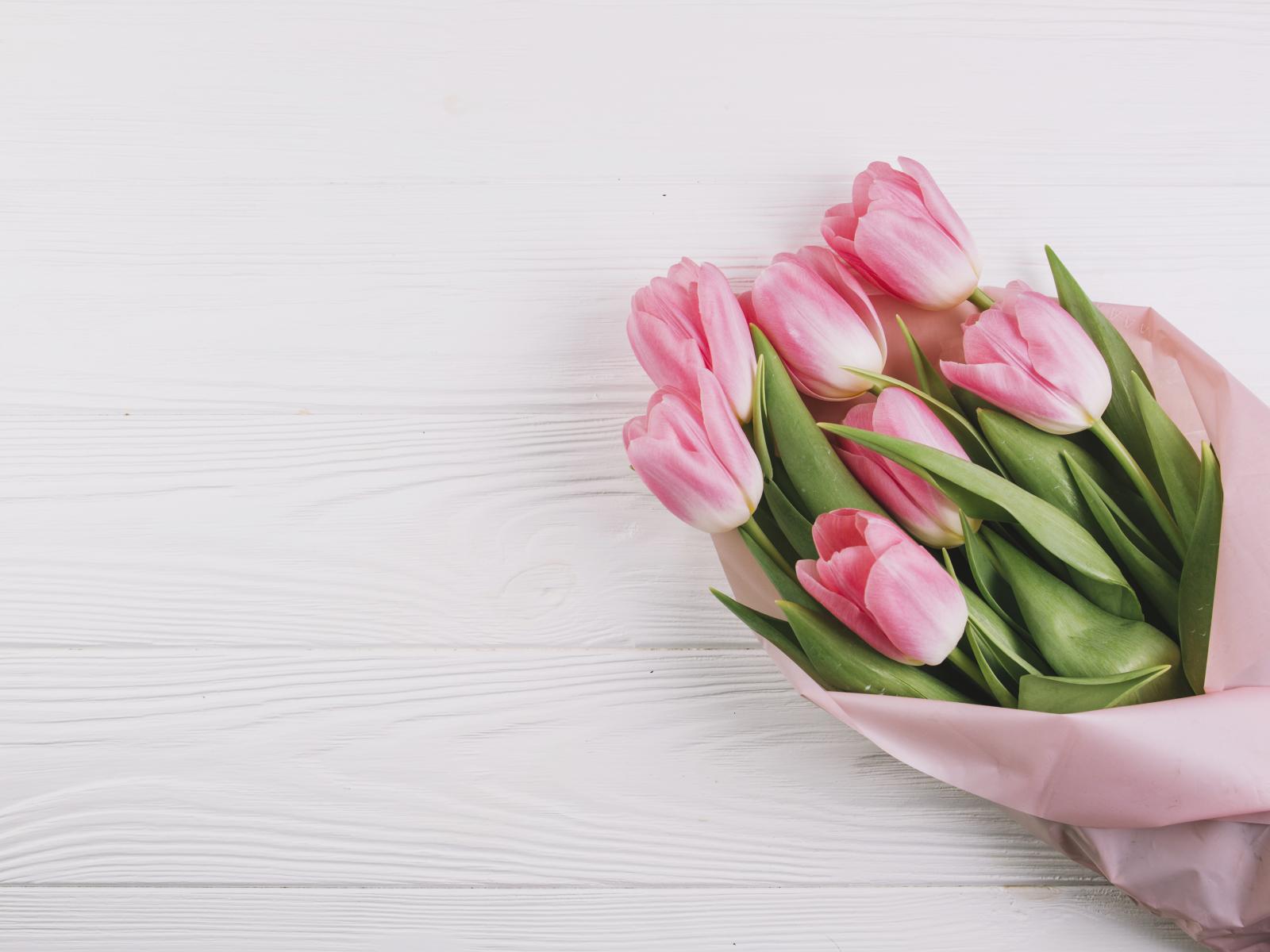 Обои Букет розовых тюльпанов, шаблон для поздравительной открытки