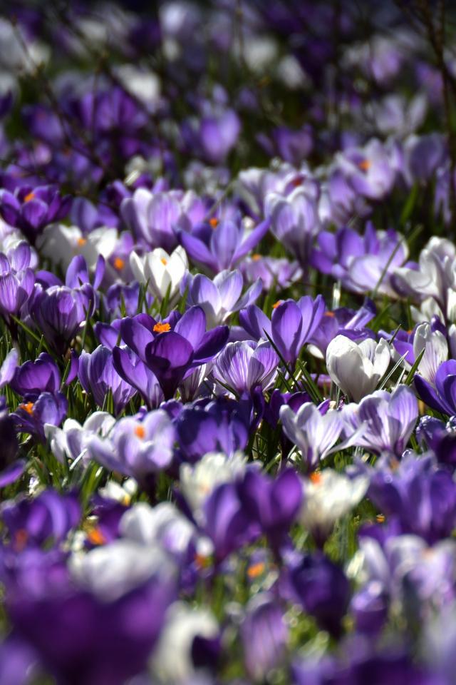 Обои Много красивых разноцветных крокусов