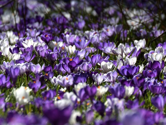Обои Много красивых разноцветных крокусов