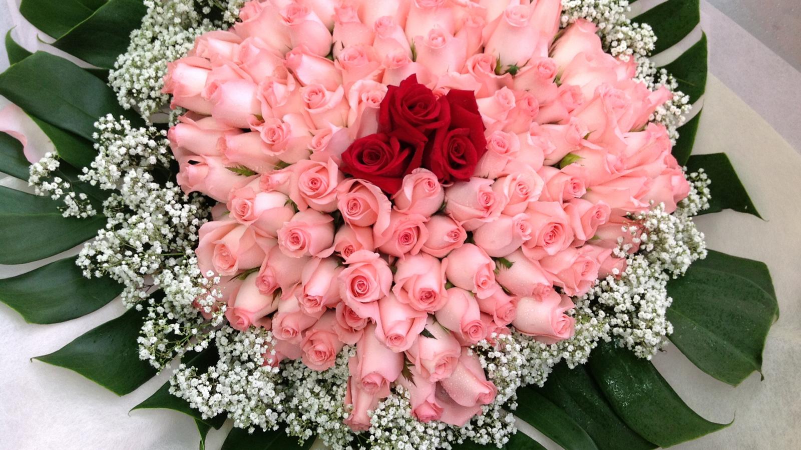 Обои Красивый большой праздничный букет роз