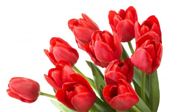Обои Большой букет красных тюльпанов на белом фоне