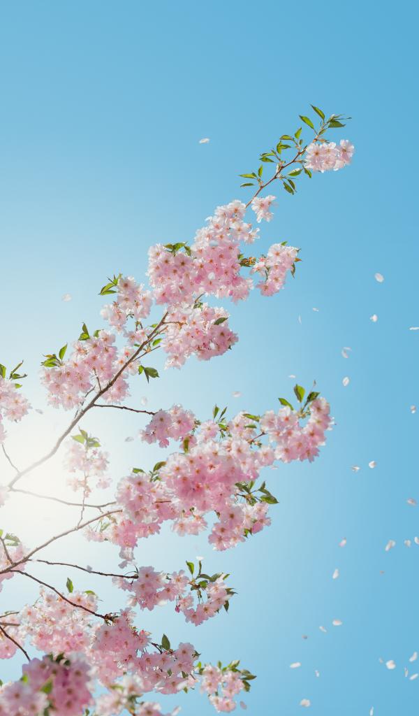 Обои Нежные розовые цветы на фоне голубого неба