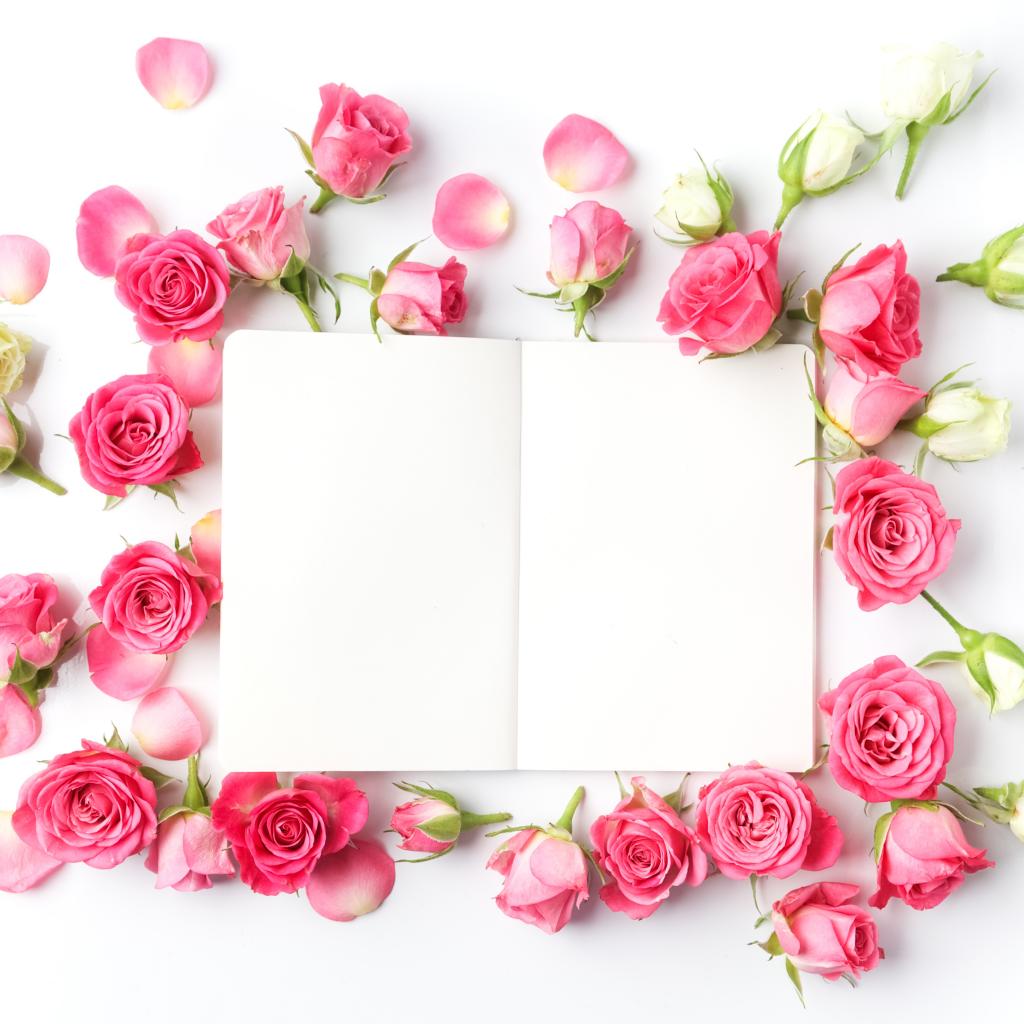 Обои Розовые розы с белым листом, шаблон для открытки