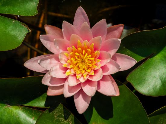 Обои Нежный розовый цветок лотоса с зелеными листьями