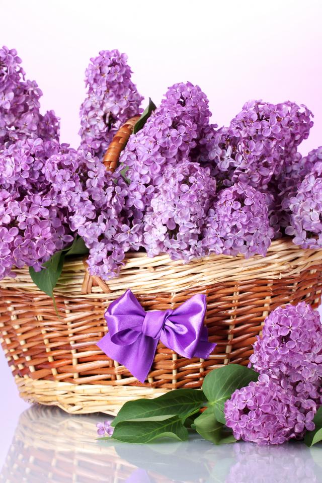 Обои Букет сирени в корзине с бантиком