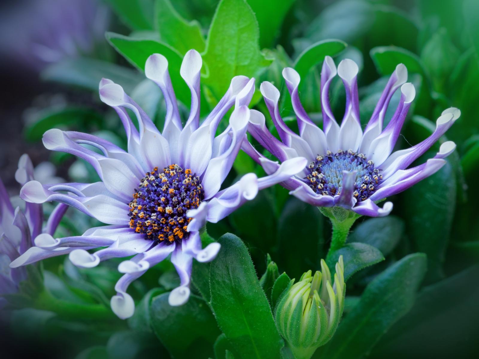 Обои Красивые сиреневые цветы африканской ромашки